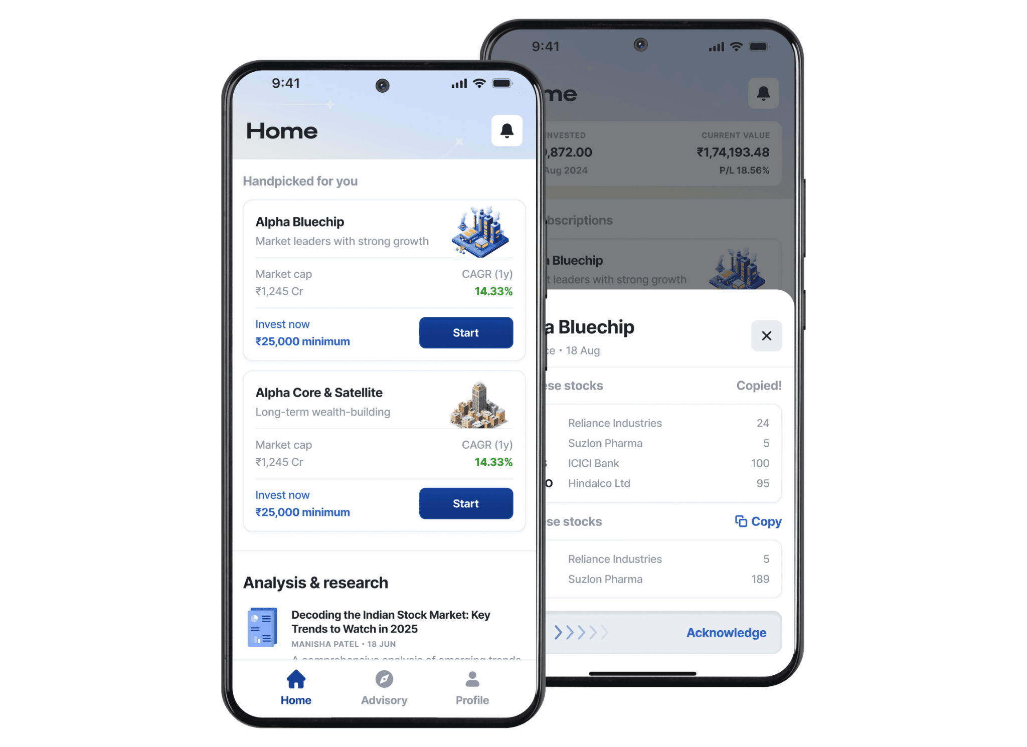 Professionally curated baskets tailored to your risk profile - conservative, balanced, or aggressive. Built for discipline and long-term wealth creation.