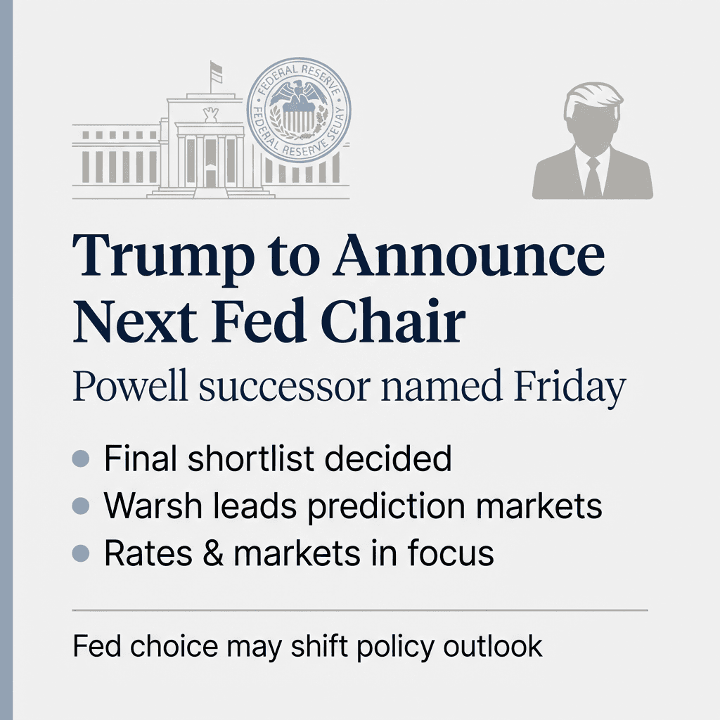 Trump says he’ll announce the next Fed Chair on Friday, with markets watching closely for policy signals.