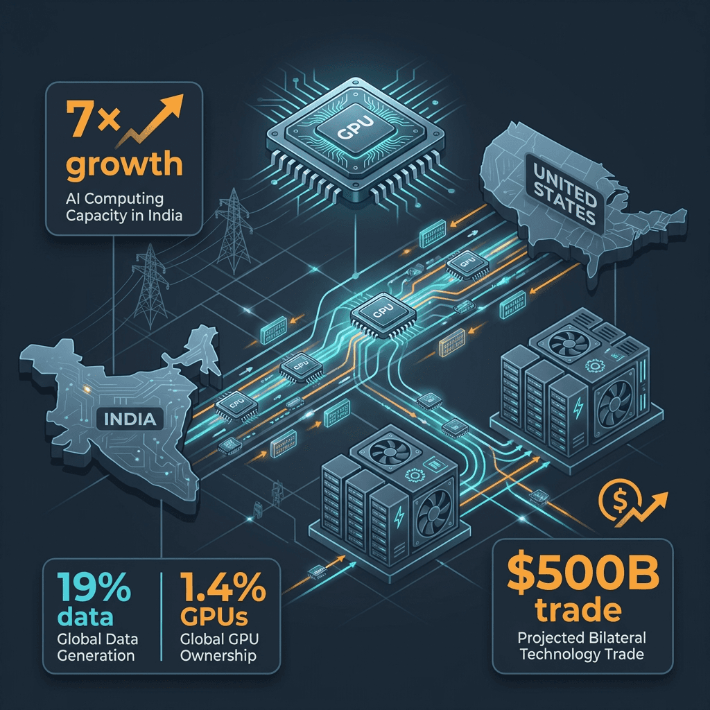 India–US pact unlocks GPU access, cuts costs, and accelerates India’s data centre-led AI growth.